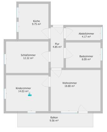 Die Wohnung verfügt über 3 Zimmer Küche Bad + 1 kleinen Abstellraum und 2 Balkone.